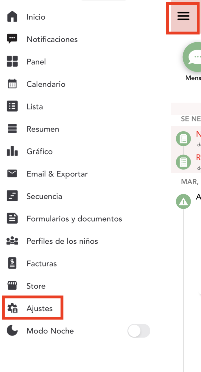 1. Acceda a su cuenta de padre/cuidador en la app de Daily Connect.