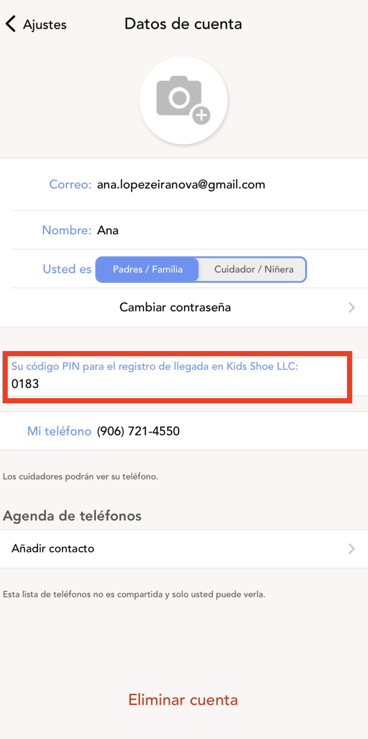 3. Aquí puede ver el código pin de su cuenta: