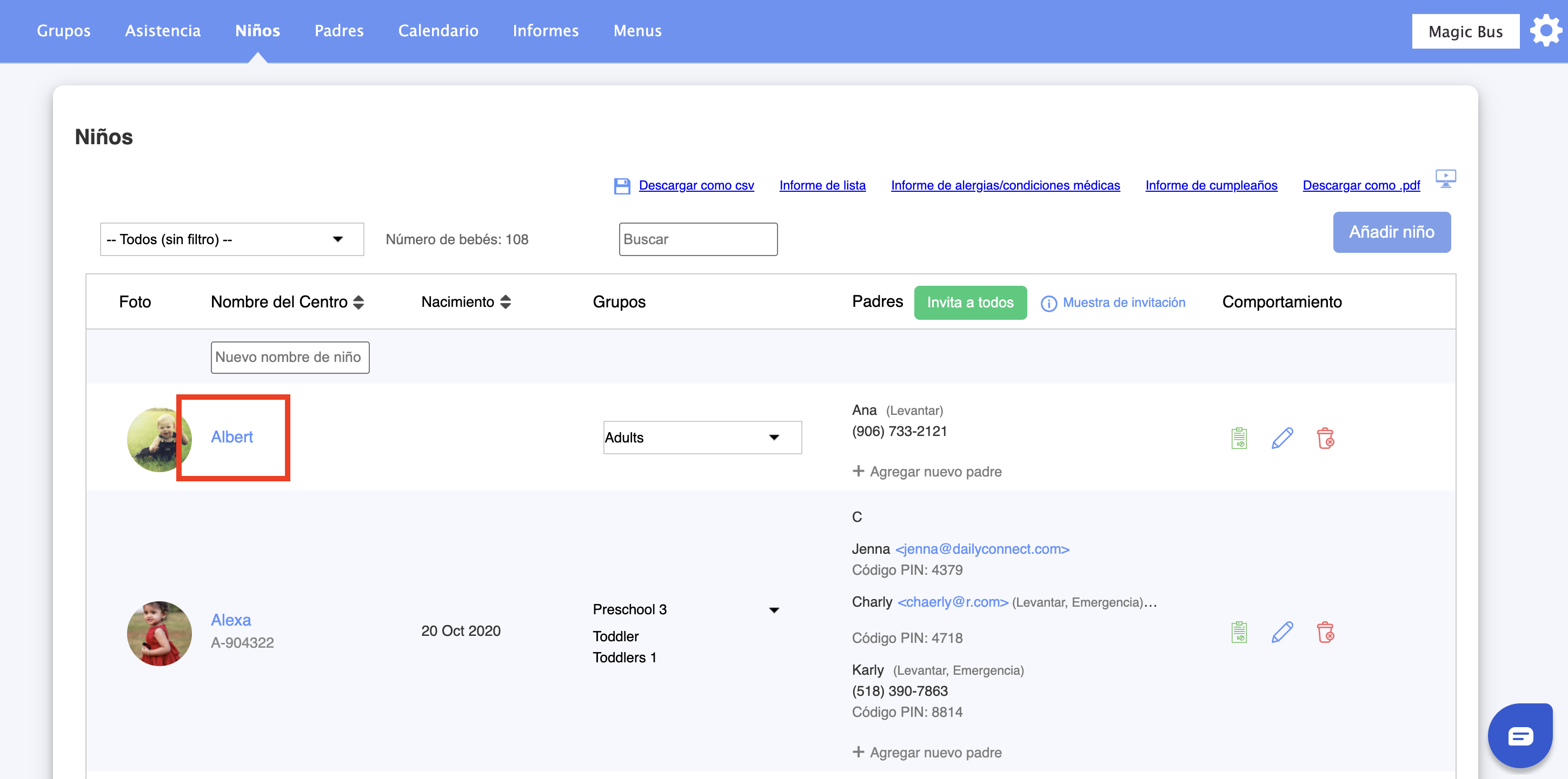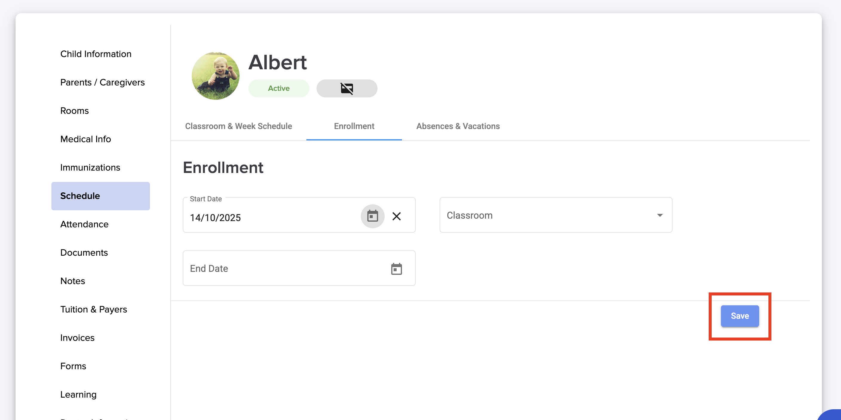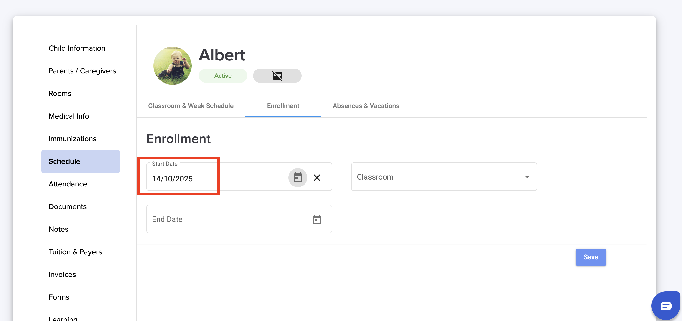Cuando agregas una fecha de inicio para los niños, estos permanecen en estado de “no iniciado”, lo que evita que aparezcan en tu lista hasta la fecha de inicio.