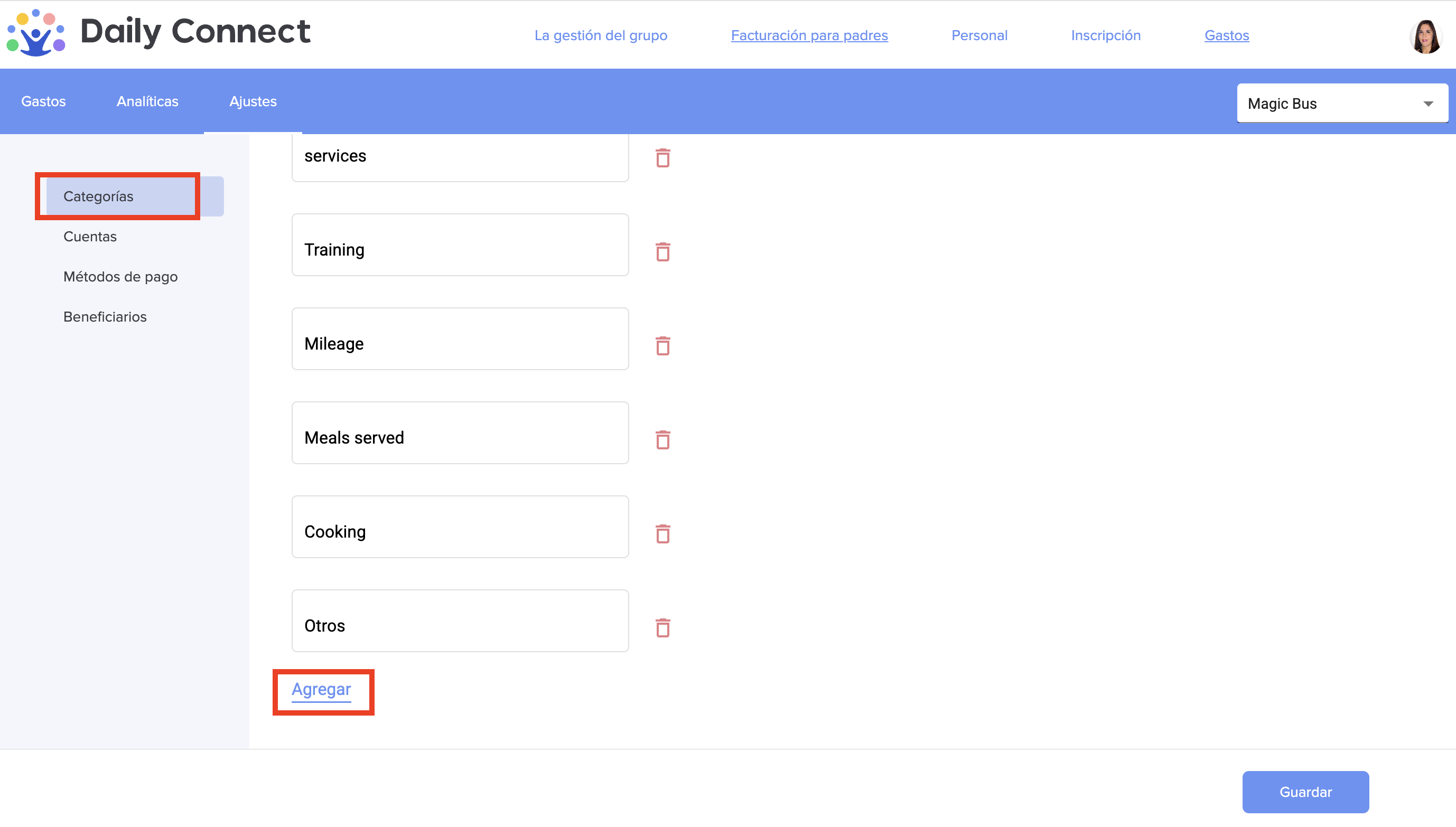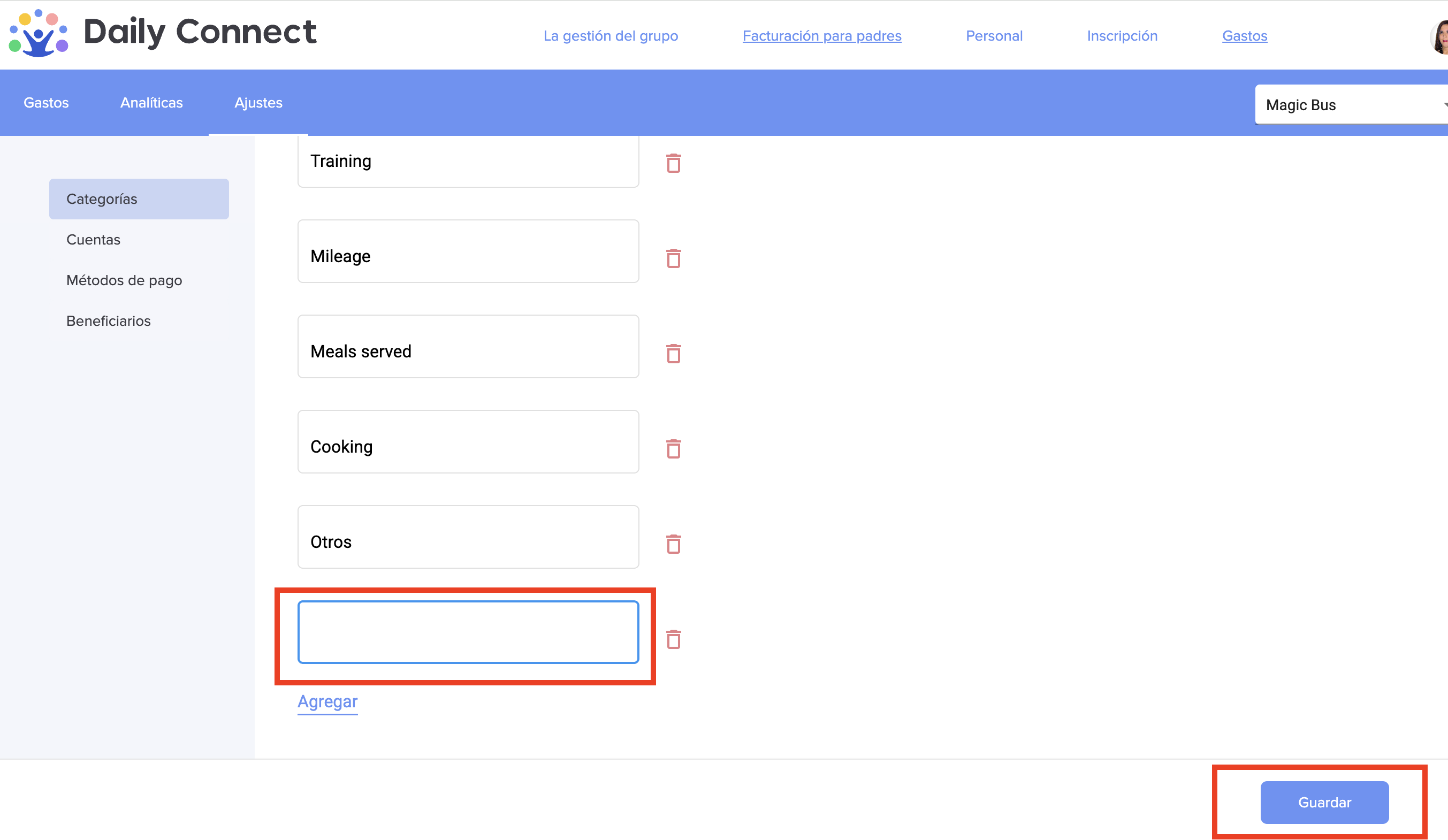 Puede registrar diferentes gastos en la plataforma de Daily Connect y organizarlos en diferentes categorías. A continuación le mostramos cómo: