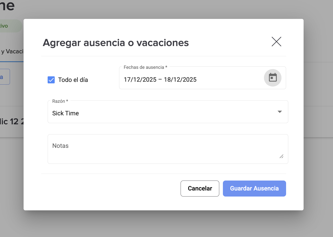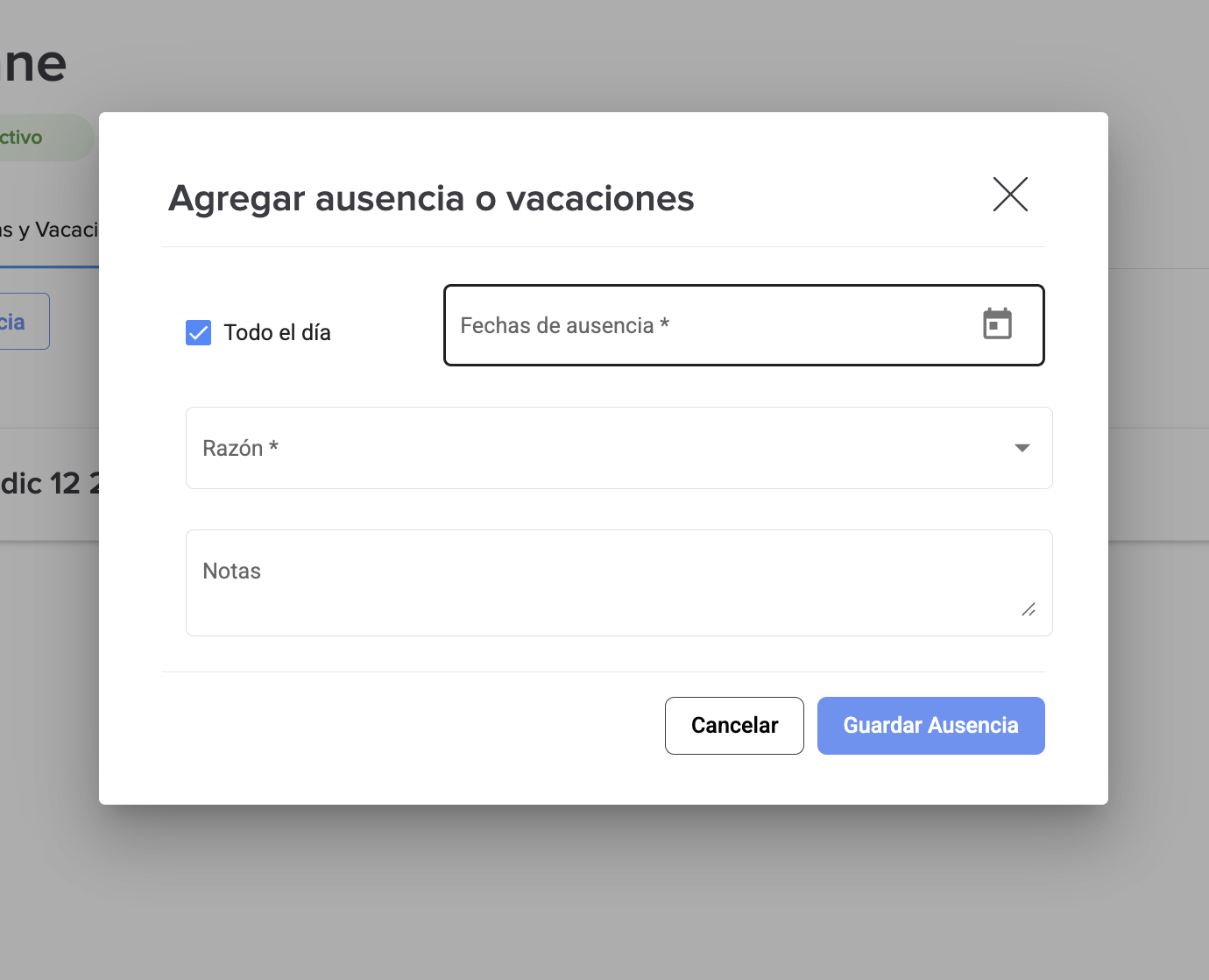 6. Una vez finalizado haga clic en Guardar ausencia: