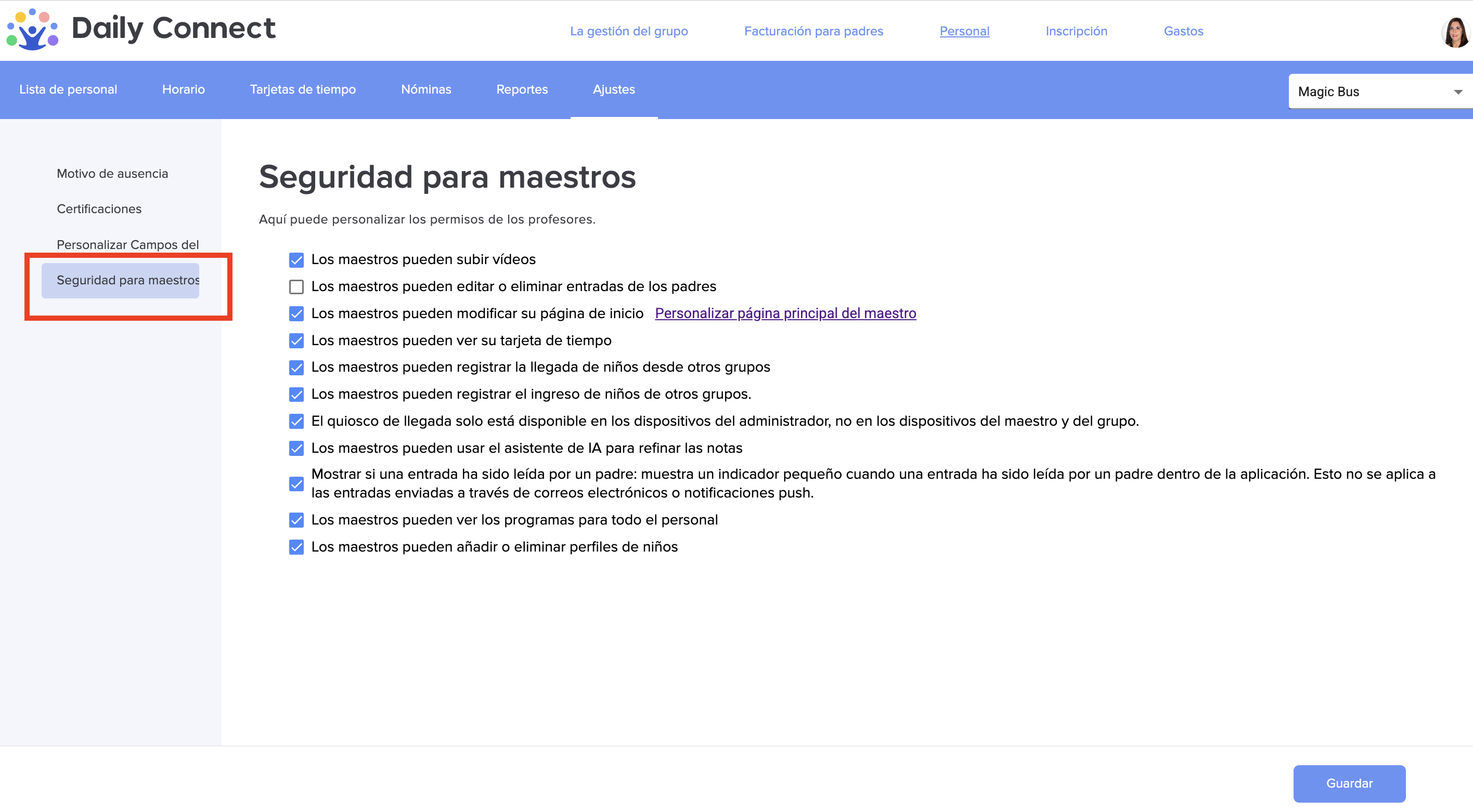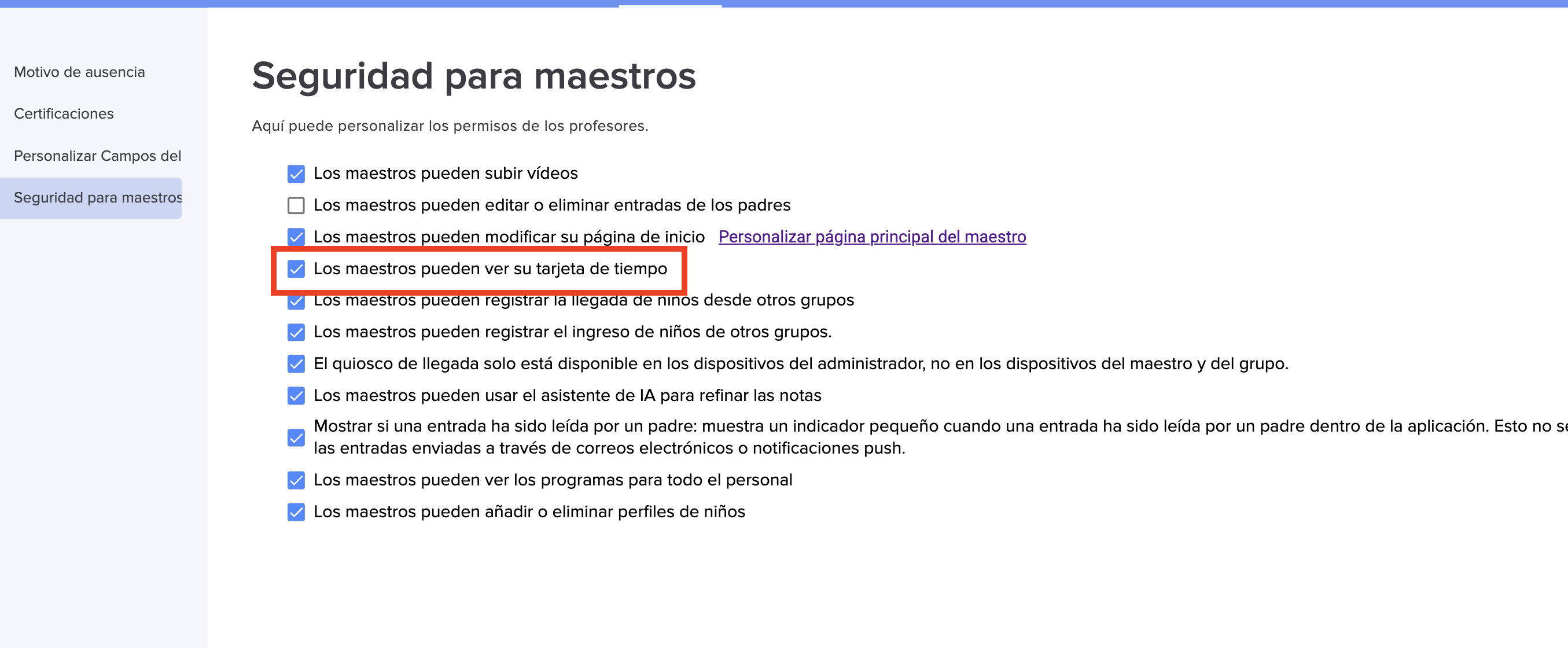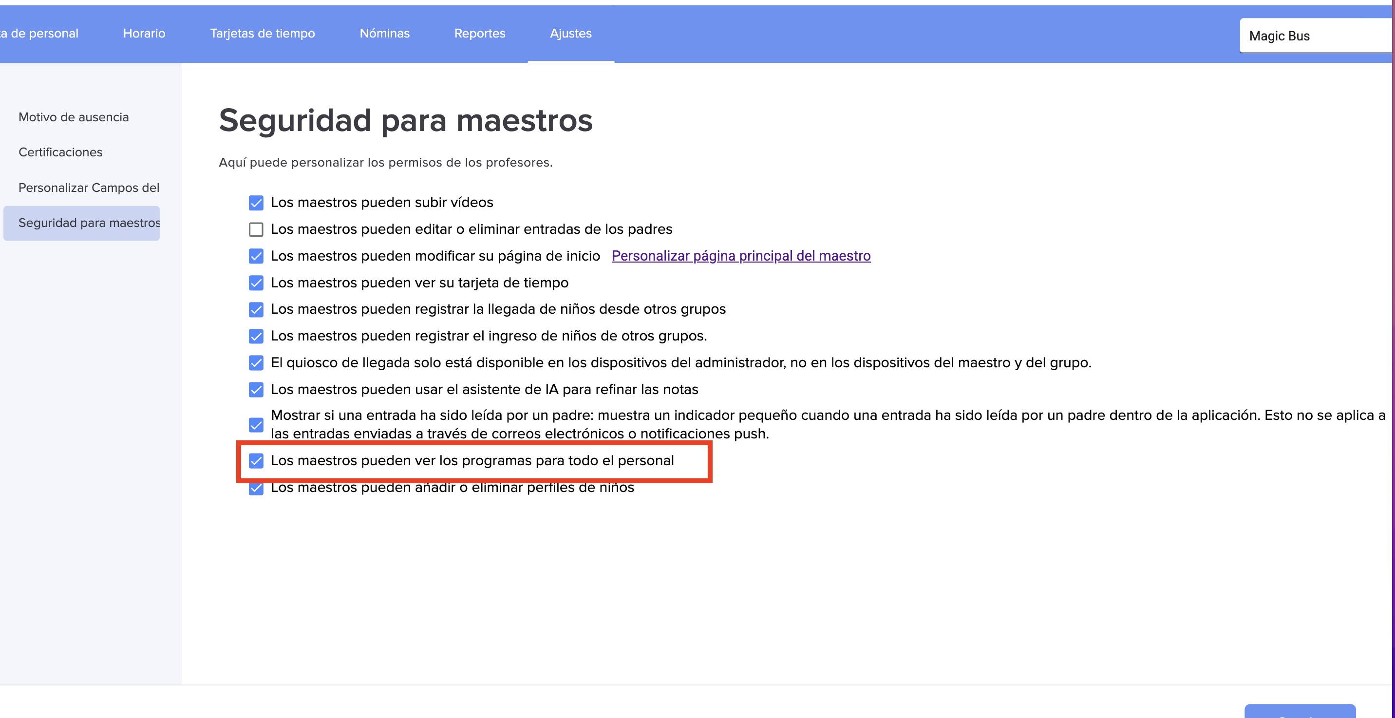 5. Para permitir que los maestros puedan ver los horarios del resto del personal seleccione esta otra opción: