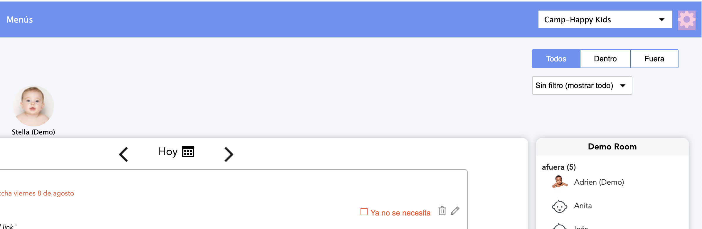 Ahora aparecerá un indicador junto al nombre del niño si no ha sido registrado como salido a tiempo, ayudando al personal a mantenerse informado y garantizar la seguridad de todos los niños.