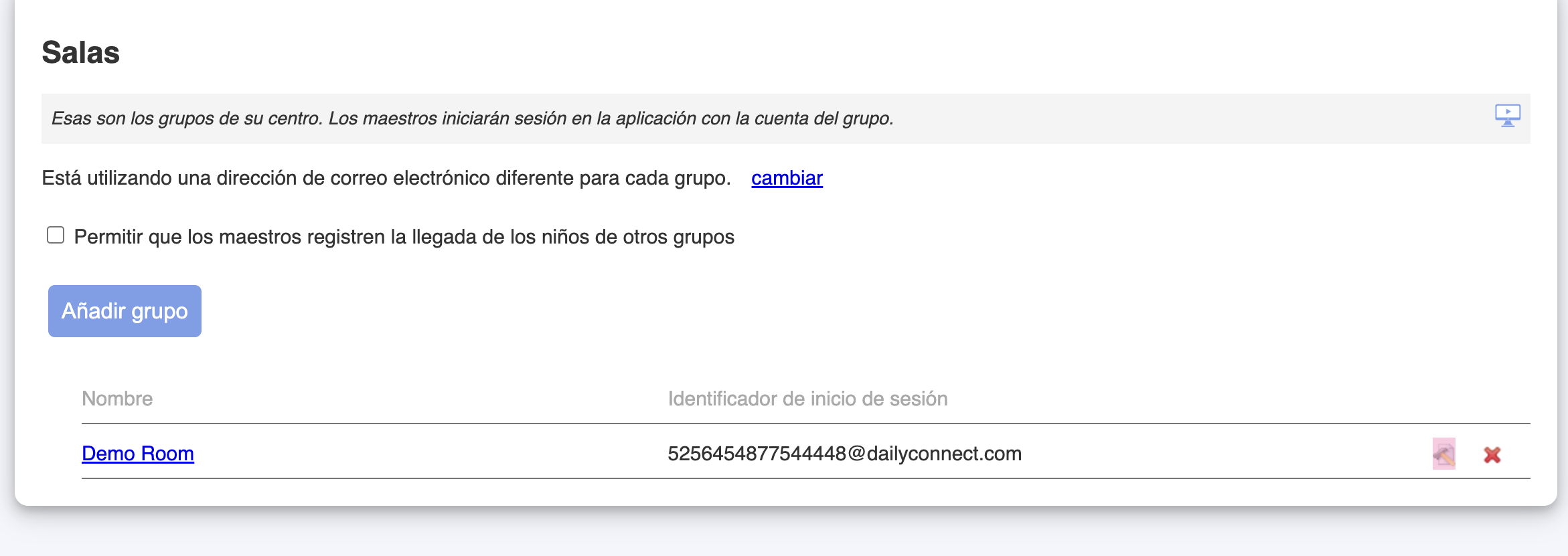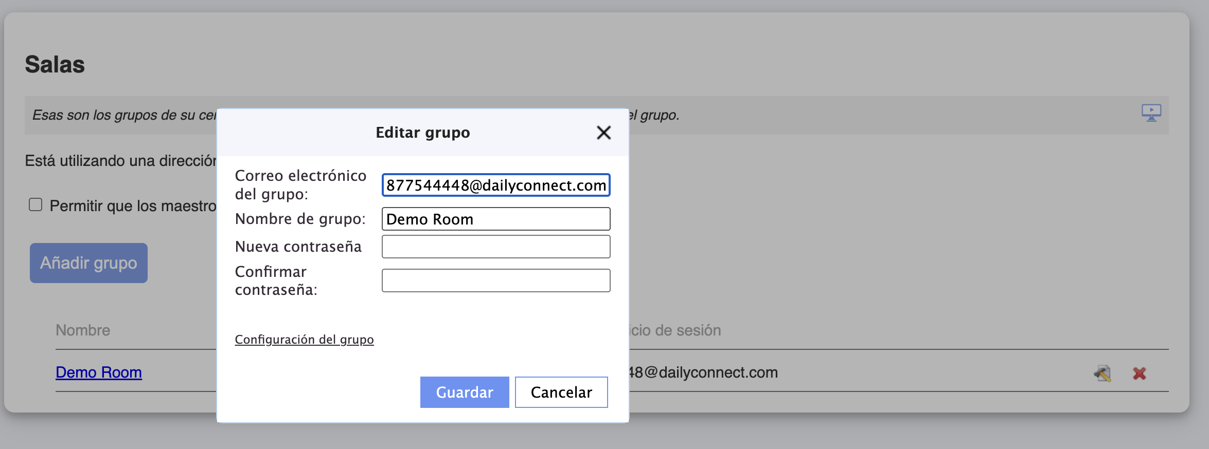 Selecciona el salón al que deseas cambiarle la contraseña y haz clic en este ícono.