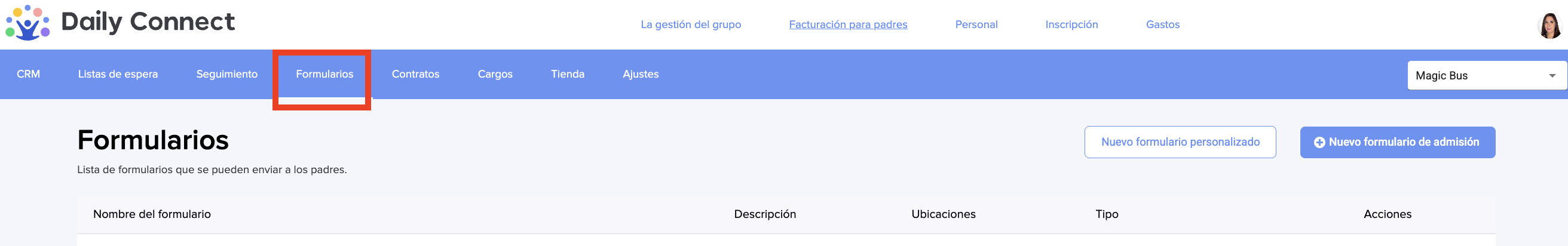 Para crear un formulario de admisión para su centro, siga los pasos a continuación: