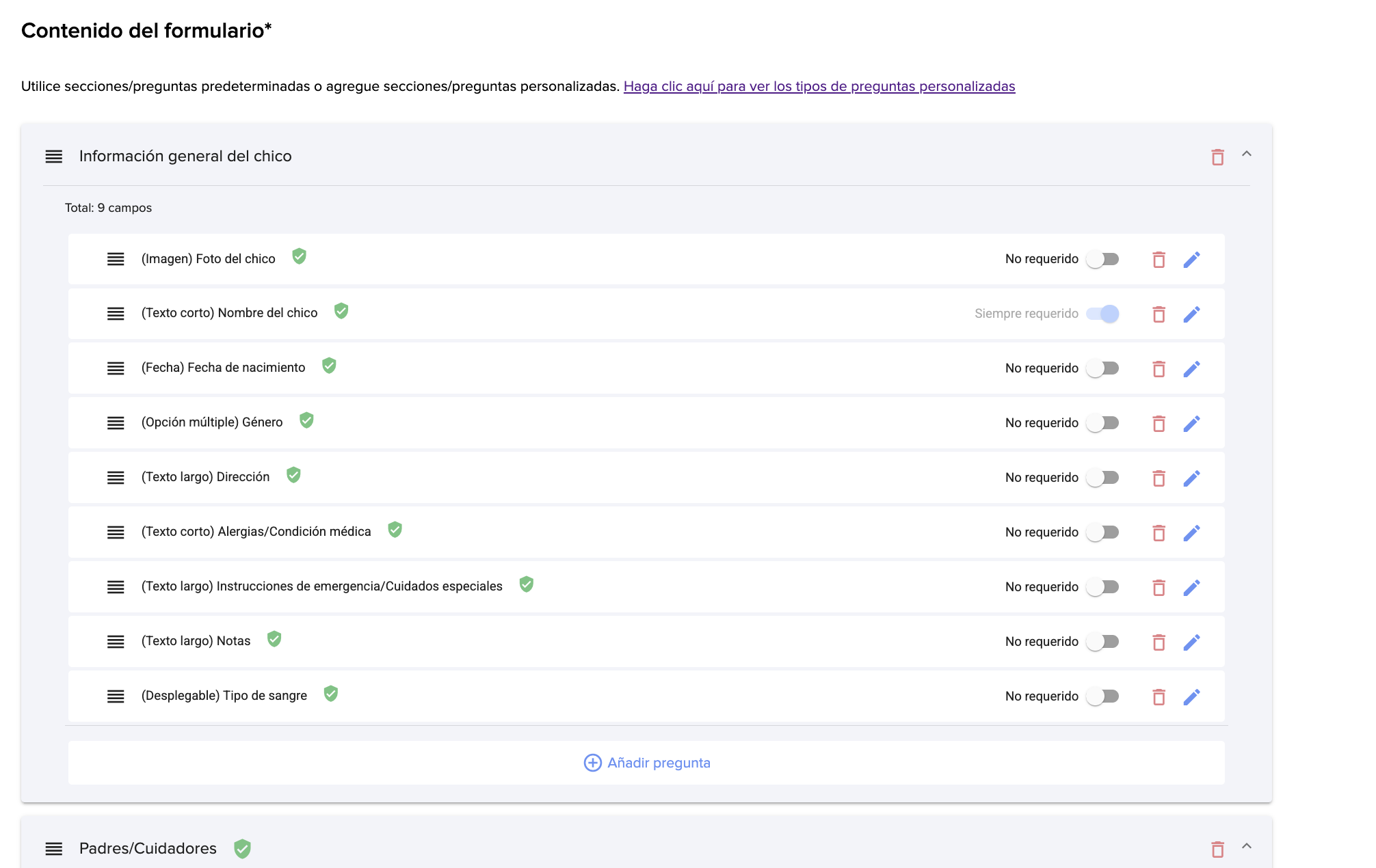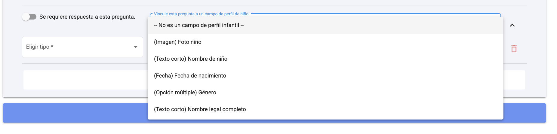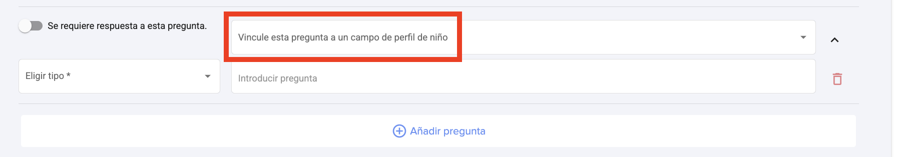 6. Para crear una pregunta dentro de una sección que se guardará en el perfil del niño, haga clic aquí: