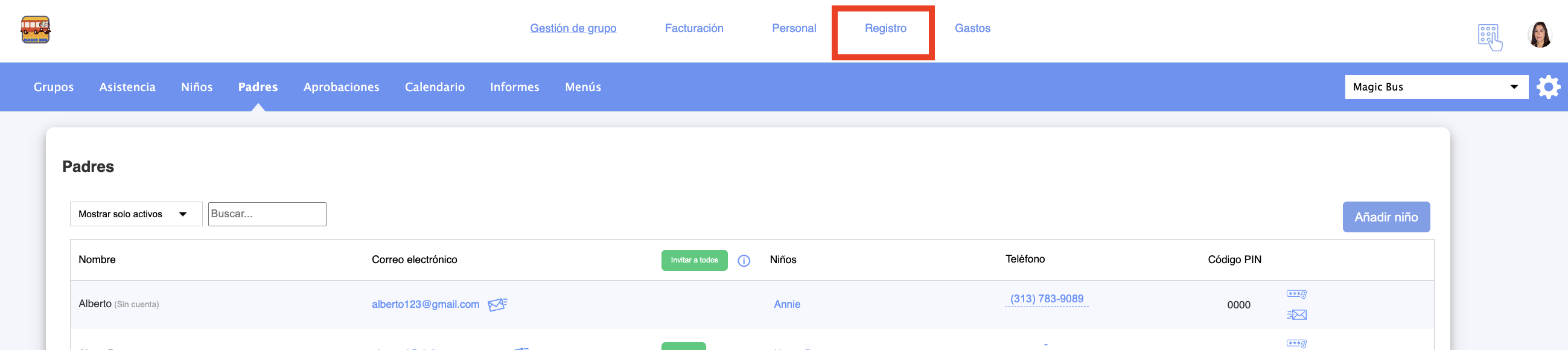 2. Vaya a Registro: