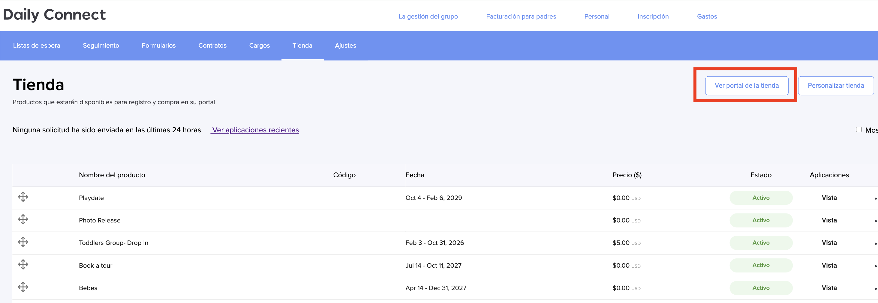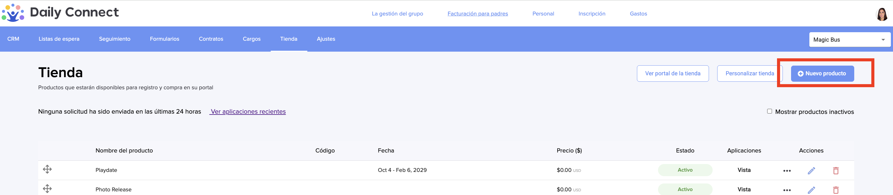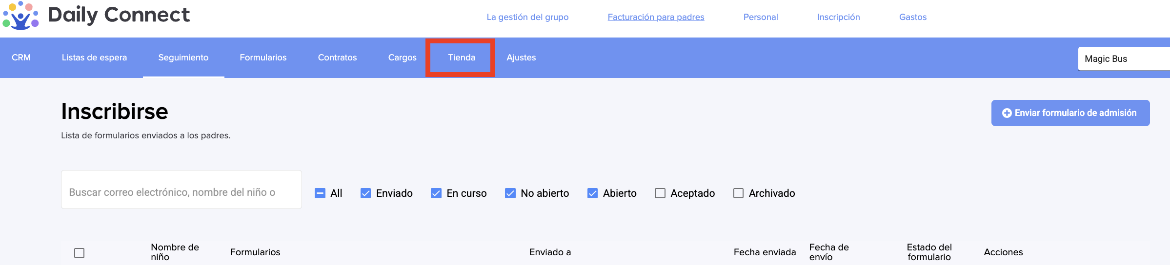 La tienda es una función dentro de nuestra plataforma que le permite ofrecer los diferentes servicios que su negocio proporciona, permitiendo a los padres suscribirse directamente a través de los formularios asociados a cada producto.