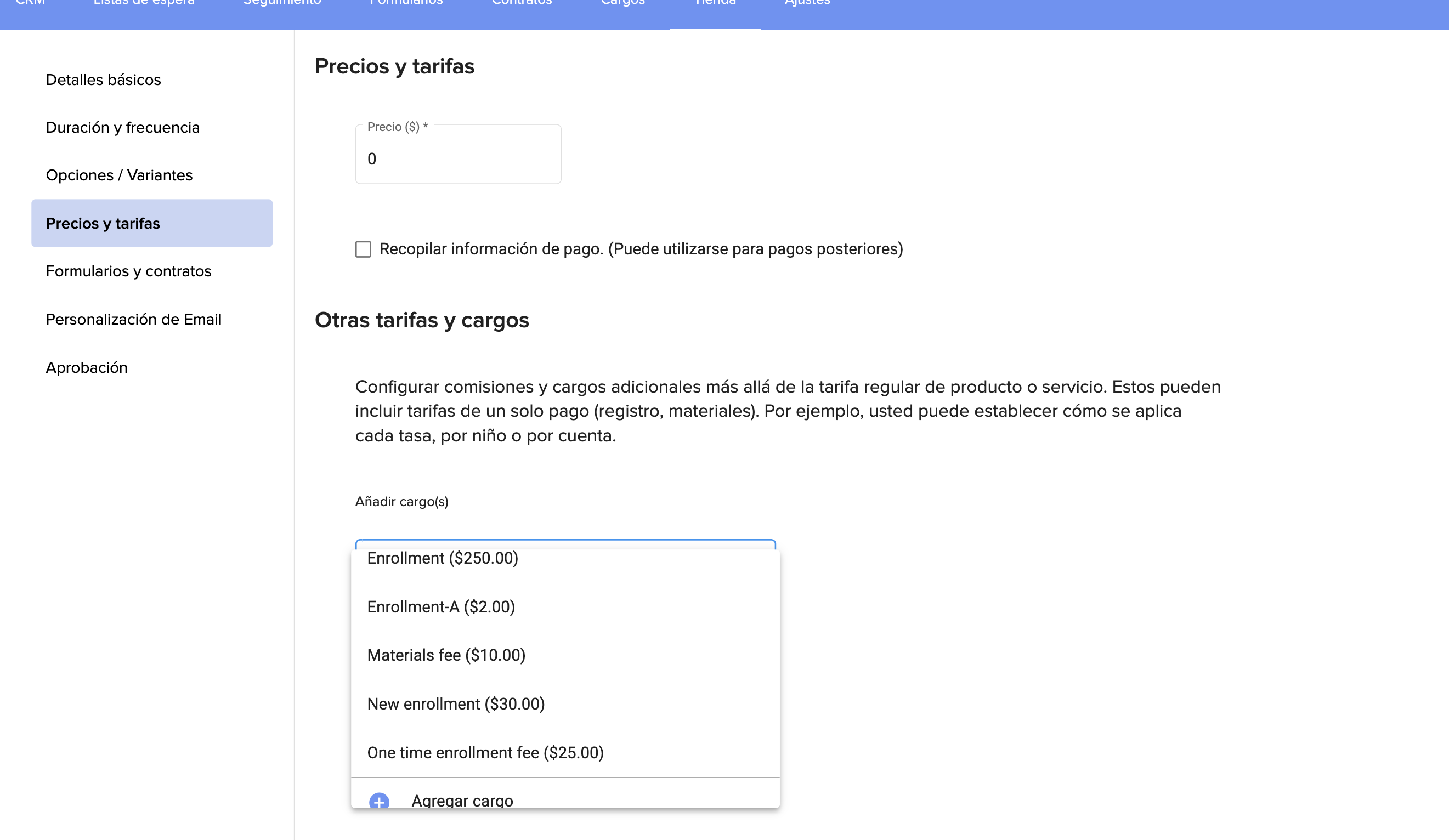 8. También puede añadir cargos o tarifas que ya haya creado en el sistema, o no: