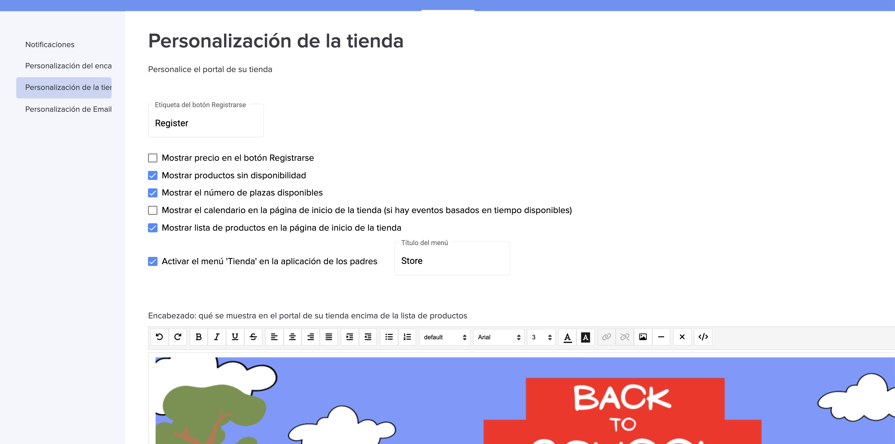 12. En Personalización de la Tienda, puede personalizar desde el banner de su tienda hasta las diferentes opciones de configuración de sus productos.