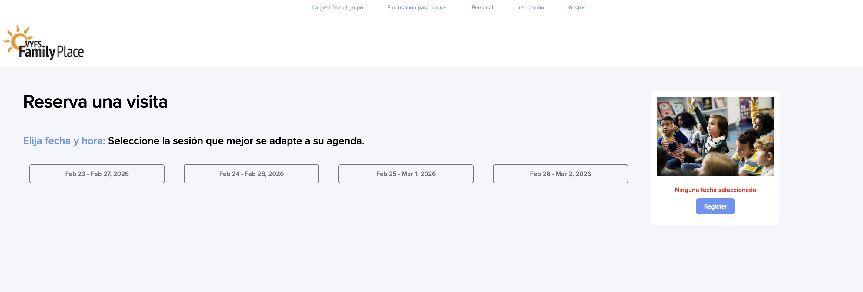 15. Los padres seleccionan la opción y hacen clic en Register, y son redirigidos al formulario vinculado al producto.