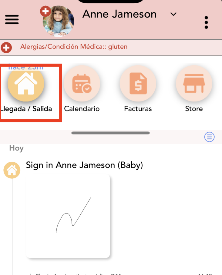 Una vez que su centro infantil escanee el código, el registro de entrada o salida quedará grabado en la aplicación.