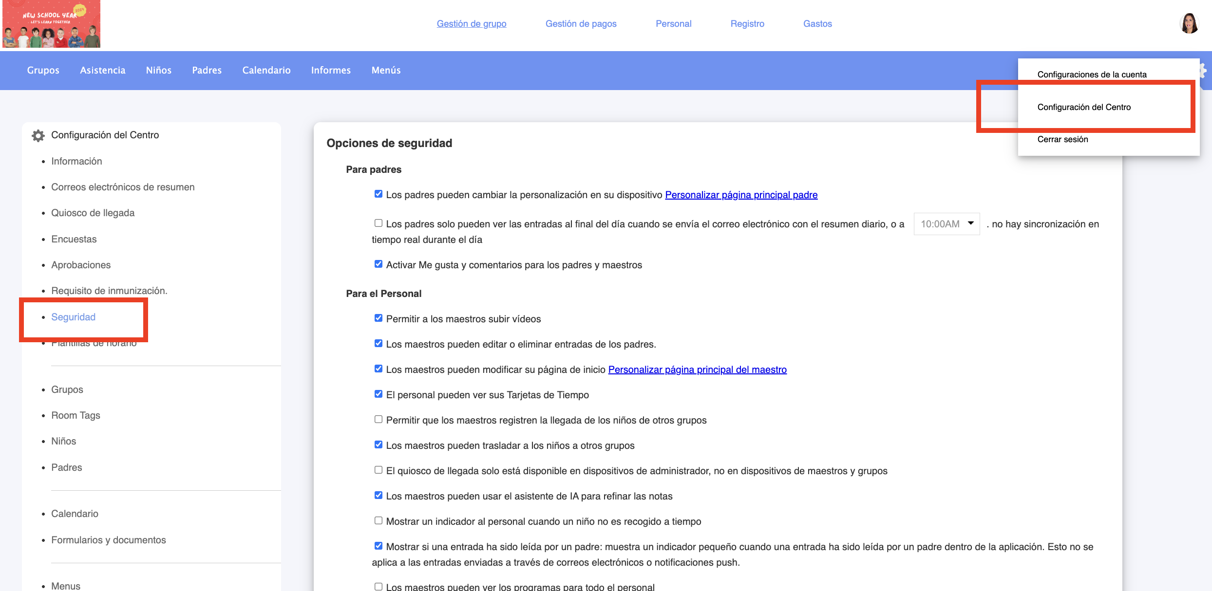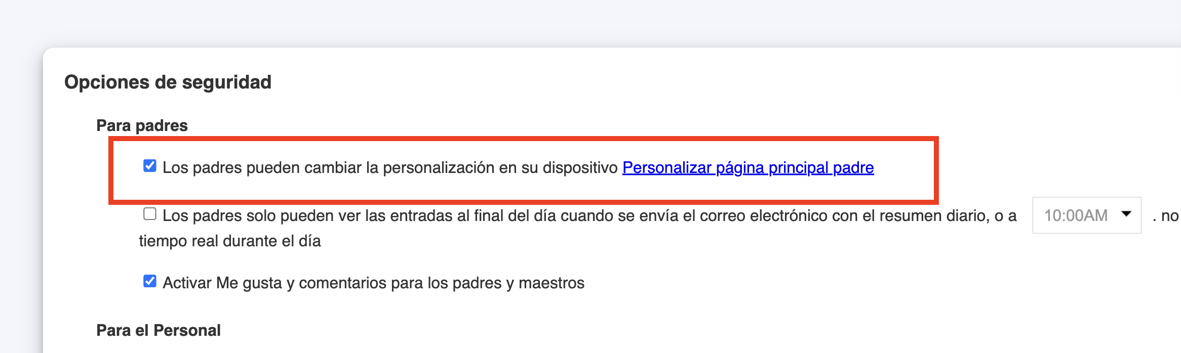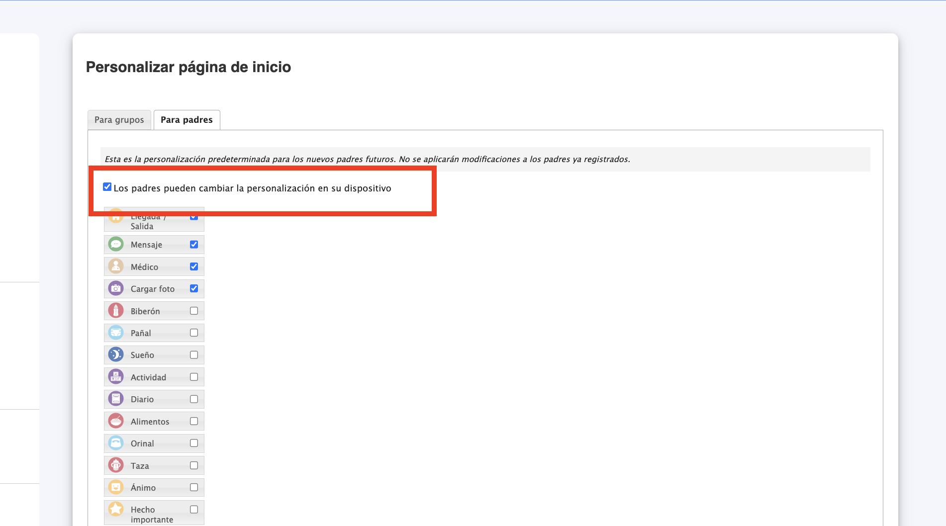 5. Vaya a la pestaña de Padres y habilite, o no, esta opción: