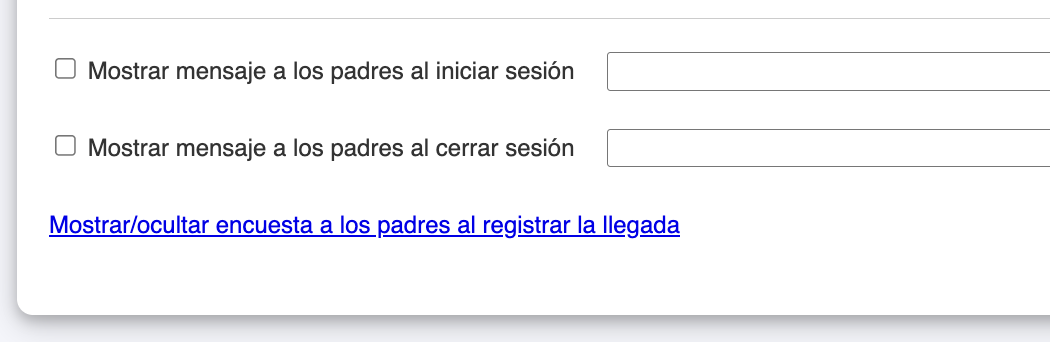 Nueva opción del quiosco de llegada: hemos añadido una nueva función en el quiosco de llegada: “Mostrar mensajes a los padres al registrar la salida”. Ahora puedes mostrar recordatorios importantes, anuncios o actualizaciones a los padres durante el proceso de salida, asegurando que la información clave se vea en el momento adecuado.