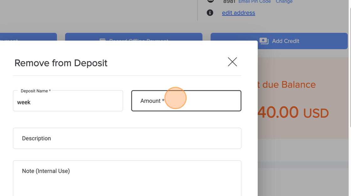 4. If you need to remove an amount from the deposit, Click on the 3 points and select Remove.