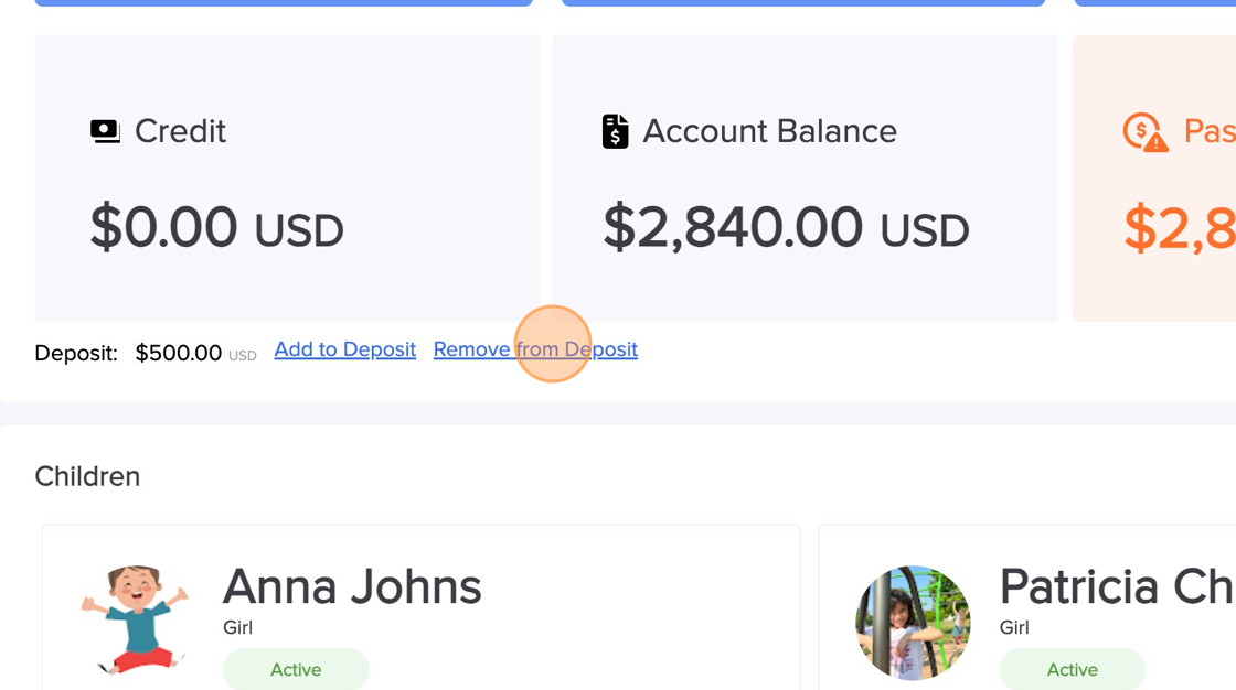 The Deposit feature allows you to track deposits made by parents, enabling you to manage these funds effectively and either utilize them as needed or return them when appropriate